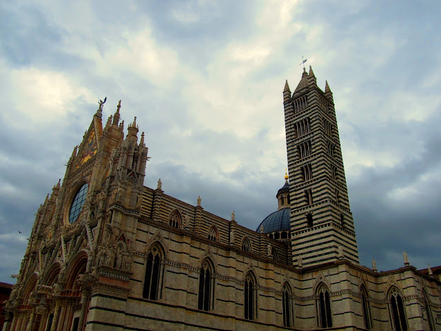O centro histórico de Siena é lindo e foi declarado patrimônio da Unesco e é um dos lugares mais visitados do mundo. A praça redonda que é enorme, toda em pedra e que vai descendo uns níveis até chegar em uma boca de captação de águas da chuva (foi assim que interpretei), dá espaço a vários turistas e estudantes e passarem ali algum tempo, apreciando a arquitetura, a história do local, fazendo-nos refletir quantas vidas por ali já passaram, quantos amores ali foram vividos, quantos Palios foram corridos, quantas lutas ganhas..... Se tratando de uma cidade que surgiu no século V, imagina-se muita coisa, mas não o suficiente.